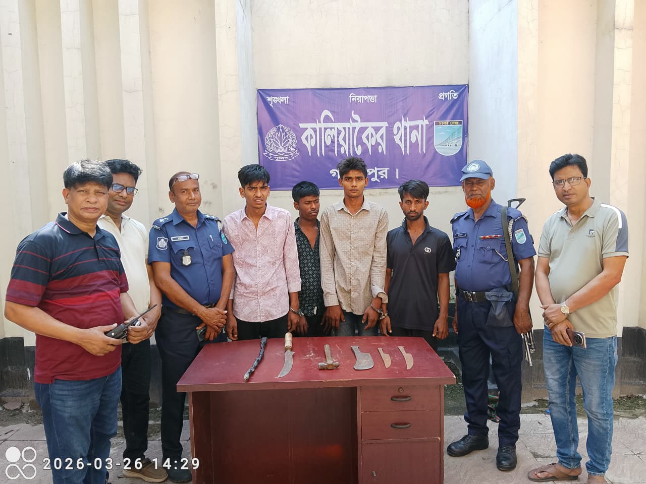 গাজীপুরের কালিয়াকৈর উপজেলায় ডাকাতির প্রস্তুতিকালে দেশীয় অস্ত্র সহ চারজনকে গ্রেফতার করেছে কালিয়াকৈর থানা পুলিশ।